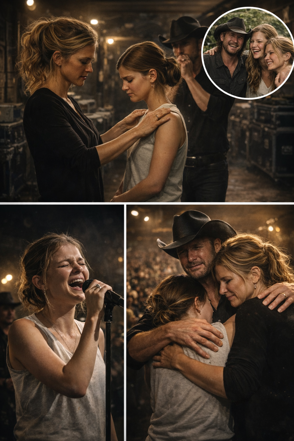 Out in the arena, thousands of fans were already on their feet, waiting for Tim McGraw — the voice that had carried them through heartbreak, long drives, and memories they would never forget. The band stood ready. The spotlight hovered like a promise.